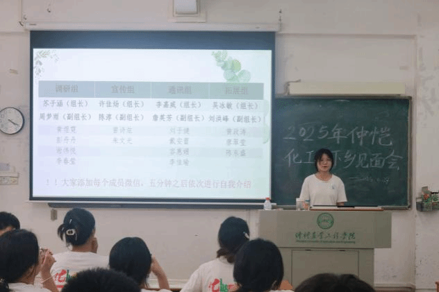 首先,池敏婷逐一介绍了调研组、宣传组、通讯组及拓展组的小组成员构成,并详细阐述了各组即将承担的前期任务内容,随后,她还对三下乡活动的整体前期安排进行了清晰的说明。队员们也依次上台作自我介绍。