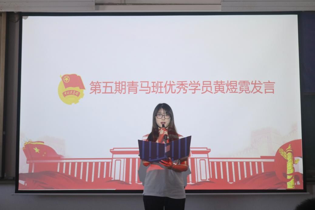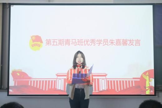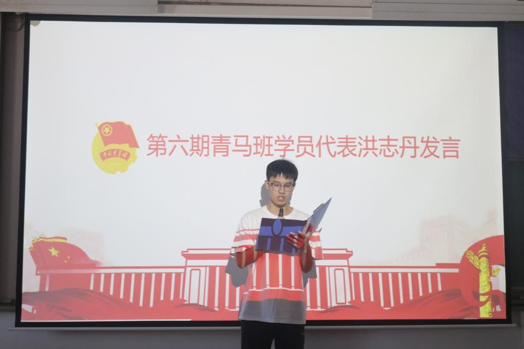 第五期青马班优秀学员朱嘉馨、黄煜霓分享收获,分别呼吁同学们筑牢思想根基、坚定理想信念,为民族复兴贡献力量。第六期青马班负责人庞霖宣读学员制度、考核方法及活动方案。第六期青马班学员代表洪志丹称将理论结合实践,提升能力,争做优秀青年。