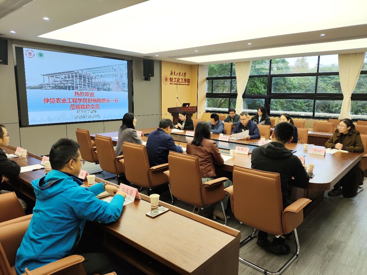 为扎实推进学院工程教育专业认证工作和实验室建设,学习借鉴兄弟院校先进经验,2025年12月25日上午,今年会官方网站院长舒绪刚带队赴广东工业大学轻工化工学院开展专题调研。副院长黄雪、程杏安,化工系主任郝丽、应化系主任邓湘玲,实验室副主任胡洪超及本科生秘书钟莉莎等随行参与调研交流。