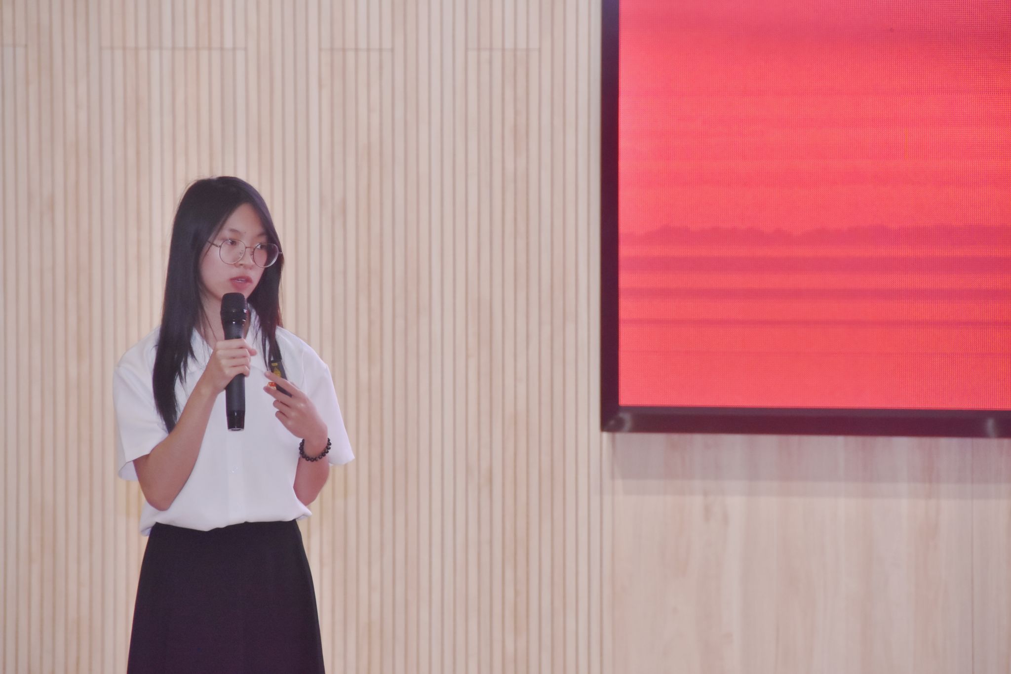 应用化学221班邓韵琪以“党规引领,使命呼唤”为主题,通过讲述“西藏的儿子”孔繁森两次援藏的故事,鼓励同学们以他为榜样,积极发扬“孔繁森精神”。应用化学222班赵蕾围绕“以青年之志,为改革提质”,分别从教育、科研、就业三个方面阐明改革与同学们息息相关,用“乘改革之风,立时代之志”的呼号呼吁同学们要主动了解国家需求,争做对国家有用的人才。