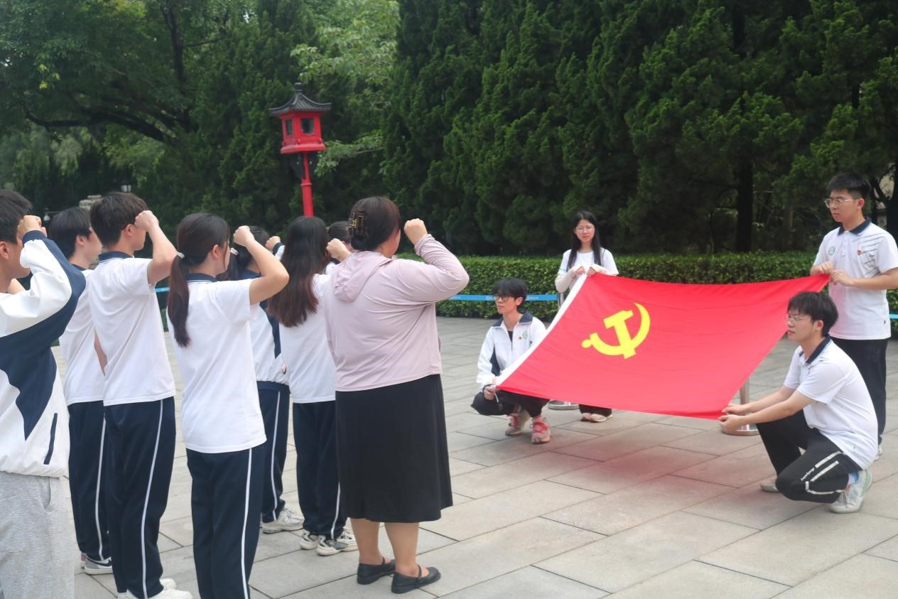 在黄花岗七十二烈士陵园,同学们跟随者讲解员的脚步,满怀敬意参观了烈士陵园,在深入了解黄花岗七十二烈士的浴血奋战的事迹后,全体成员面向烈士纪念碑默哀、行鞠躬礼,表达对革命烈士的沉痛哀思、深切悼念和崇高敬意,并献上花束以致追思致敬之情,全体成员绕行烈士纪念碑一周。随后,在烈士纪念碑前重温入党誓词,回顾入党初心。