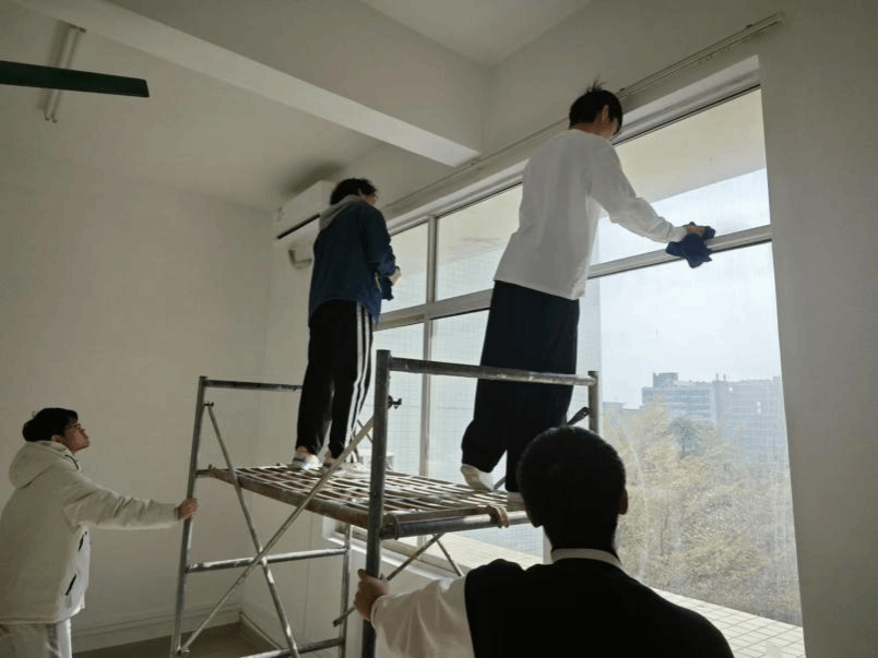 1月2日、3日两天,师生们先行集合,该院党委书记邱树华讲话强调,活动过程中一定要注意安全,齐心协力,分工合作,高效率地进行四楼学院办公室清扫调整工作。随后,在党支部书记的带领下,师生们纷纷拿起工具,按计划迅速投入到集体劳动当中,有的打扫空实验室的卫生,有的把物资搬运至指定位置,在活动过程中,大家都主动承担起了最辛苦的工作,团结协作,默契配合,共同奏响新年的第一曲的劳动交响乐。