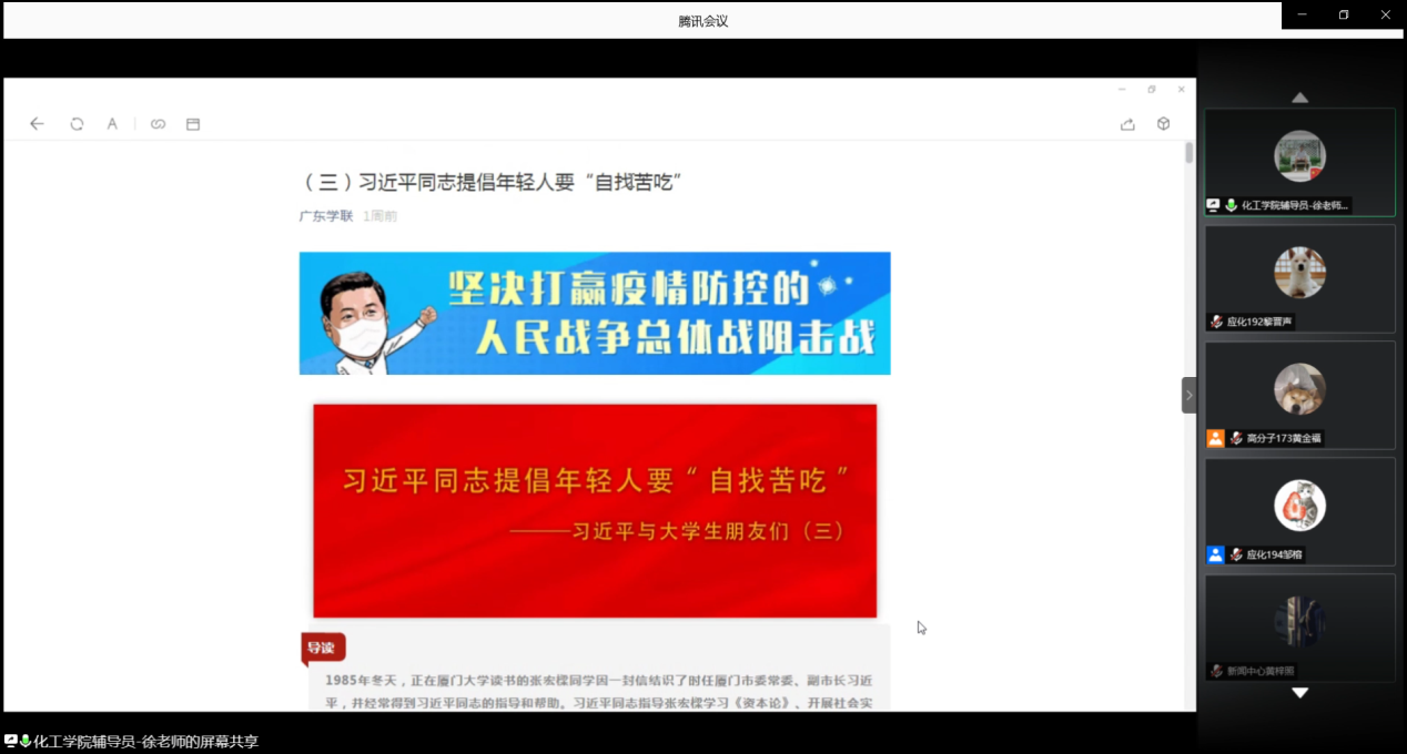 最后,徐老师希望同学们能多思考,把此次学习的内容真真正正运用到往后的实践中,以便更好地促进学业、生活和个人综合能力发展,不辜负习近平总书记厚望,发挥新时代大学生的青春力量,成为中国特色社会主义的合格建设者和可靠接班人。