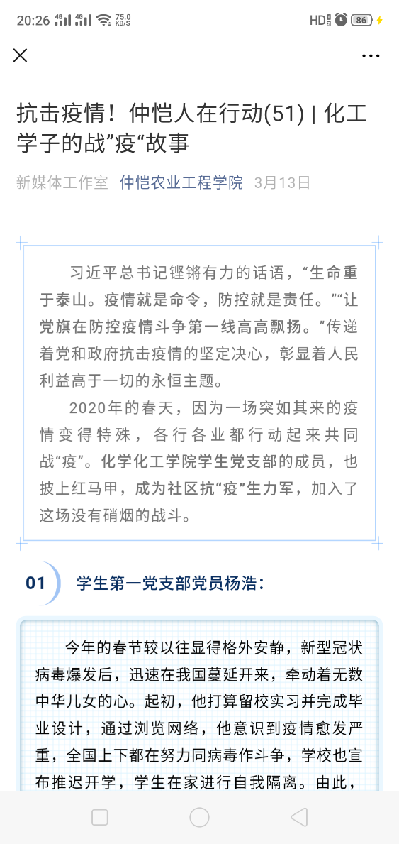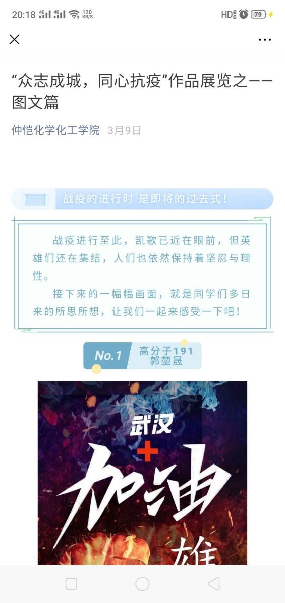 爱国主义教育是永恒的主题。抗疫期间,及时抓住俯首即是的爱国主义题材,例如全国各地涌现出来的抗疫英雄事迹,国内知名人士不计代价地捐款捐物,海外华人华侨心系祖国不辞辛劳搜集并包机送回的祖国的医疗物资等感人事迹,及时推送给学生,润物无声,给学生以爱国主义精神的滋养。学院团委也积极组织学生拍摄武汉加油视频和发表系列文章来抒发对武汉的关切,对祖国的感恩。