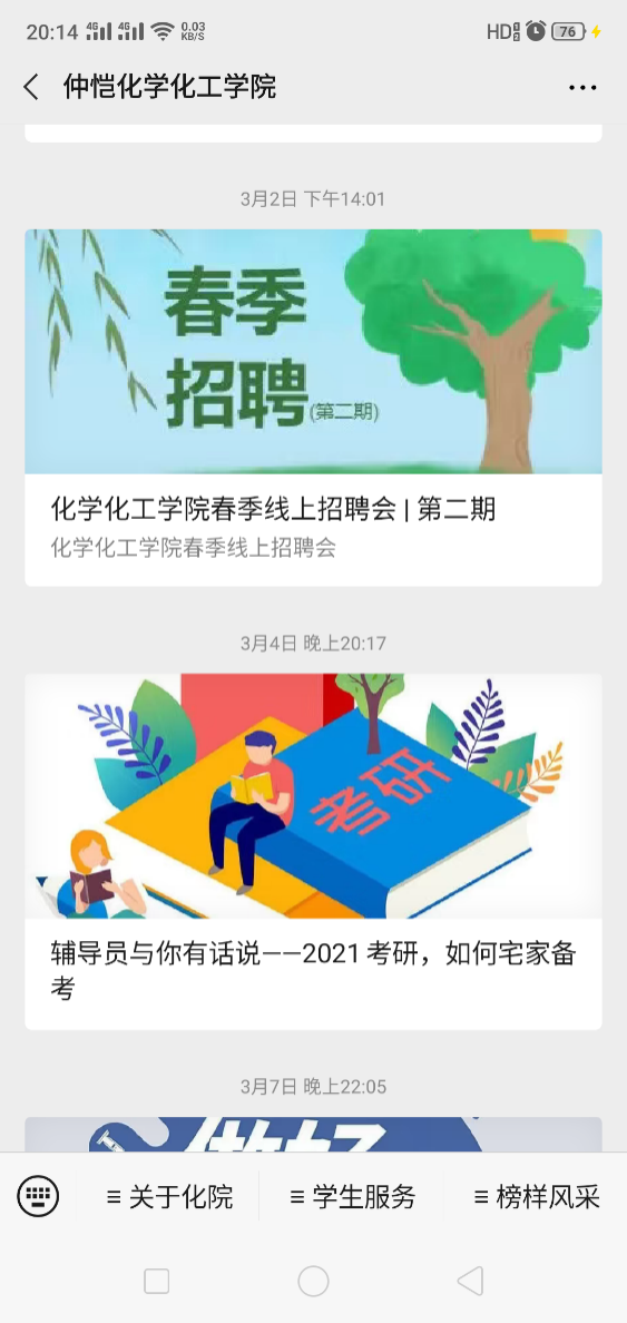 针对毕业生,学院推出“疫情突至,毕业生该如何应对”推文,帮助毕业生理清思路,做好学习与工作计划。针对大三考研学子,学院推出“2021考研,如何宅家备考”推文,引导学生制定复习计划,快速进入学习状态。对于如何择业,学院推出“今年会官方网站春季网上招聘会”,分析就业形势,引导学生理性择业就业。