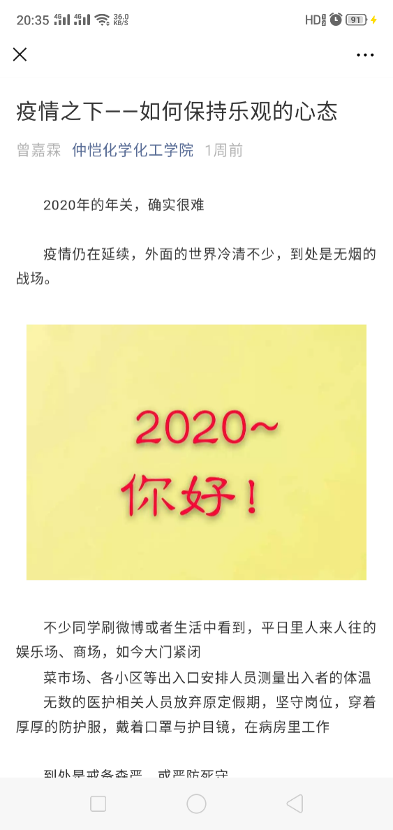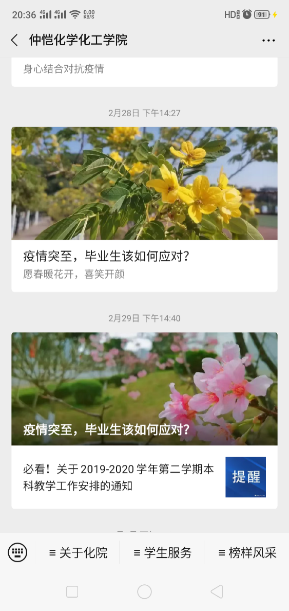 宅家两个月,加上春季阴雨连绵,学院进一步开展学生心理健康摸查,及时疏导学生心理困惑,舒缓焦虑心理。适时推出“疫情时期,也别丢掉生活小情趣”和“从心开始,从身出发”倡导学生在家提高防护意识、做好防护措施,鼓励学生宅家解锁学习和运动新技能;推出“你好,早上好”和 “报复性熬夜,你知道多少” 推文,帮助学生养成良好的作息时间,提高学生学习效率。