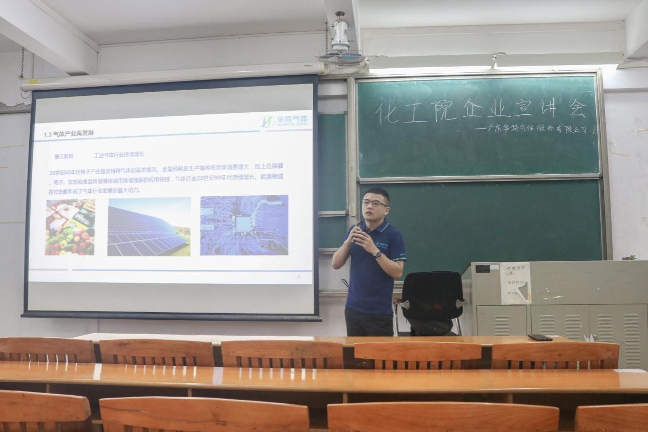 三位负责人围绕气体产业的发展历程、企业发展的历史并结合自身的经历对企业目前的气体产业化进程进行了详细介绍,随后,公司招聘负责人就招聘岗位、岗位晋升流程、食宿环境、薪资待遇、简历投递流程等方面为在场学生进行讲解、答疑。他们表示公司拥有完善的人才培养与发展体系,针对不同的人才实行不同的培养计划,能够使新员工快速成长。最后广东华特气体股份有限公司期待同学们的加入。