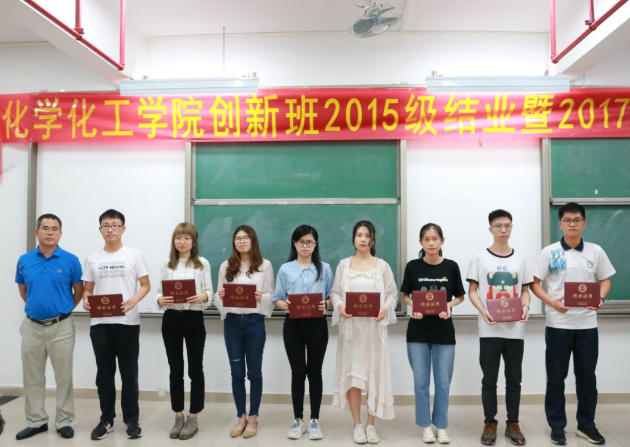 5月10日下午,我院创新班15级结业暨17级开班典礼于综合教学楼210课室隆重举行。本次大会由我院辅导员王正梅老师主持召开。我院党总支书记邱树华老师、院长舒绪刚老师、党总支副书记严丽纯老师、副院长兼15级创新班班主任冯光炷老师、副院长兼17级创新班班主任陈循军老师、化工系系主任李英玲老师、材料系系主任周向阳老师出席本次典礼。