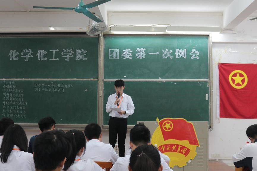 最后,由团委书记梁开华上台讲话。梁老师首先对新加入团委的助理们表示了衷心的祝贺。此外,梁老师对新成员们提出了四点期望:一是作为团委的一员,要在日常生活中要树立榜样,学习上要积极认真,工作上要勇于担当,展现化工学子风采;二是要虚心向部长学习,把所学技能灵活运用到工作实践中去,提高工作效率;三是要对工作中的错误及时纠正,做到多反省、多思考,举一反三,保证往后部门工作高质量完成;四是要在日常工作中要与各部门多交流沟通,互帮互助共同成长,传承团委良好成长氛围。