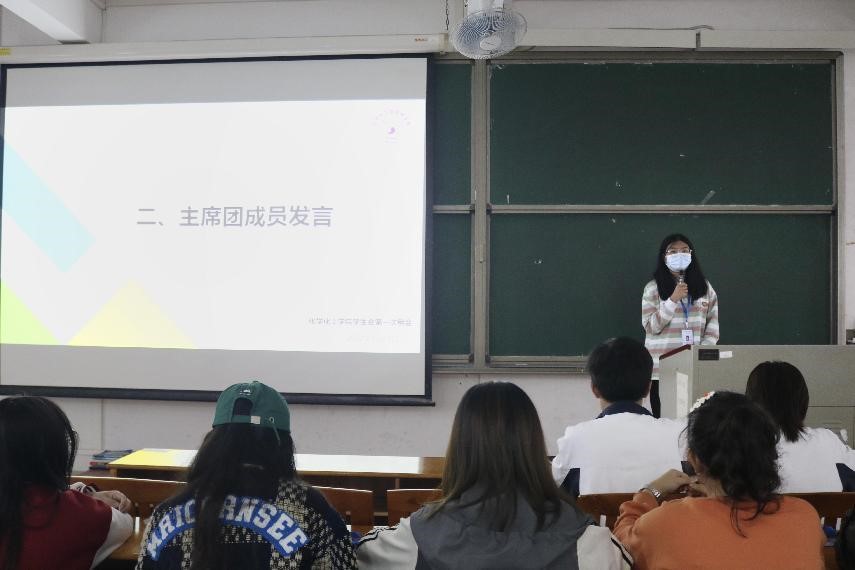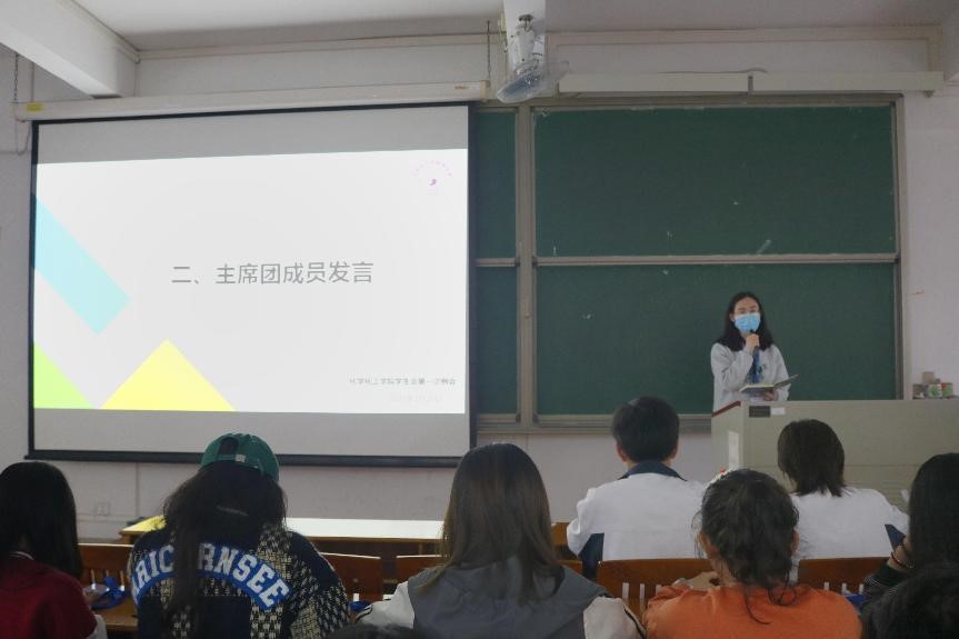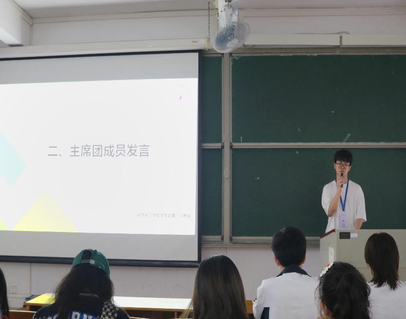 最后,由主席团成员黄慧婷、钟诗婷、伍德杰依次上台发言。黄慧婷指出各部门成员要通过任务的进行及时找出并改正工作中存在的问题,并提醒各负责人应担起观察和督促代理负责人的责任,引导部门成员更快更好地完成工作。此外,钟诗婷希望各部门成员能够积极配合,提高工作和学习的能力,在新学期一起建设好学生会,营造良好的学生会氛围。伍德杰则希望各部门成员能发现自己的不足之处并积极完善,在做好自己本职工作的同时,也要加强与其他负责人的联系与合作。