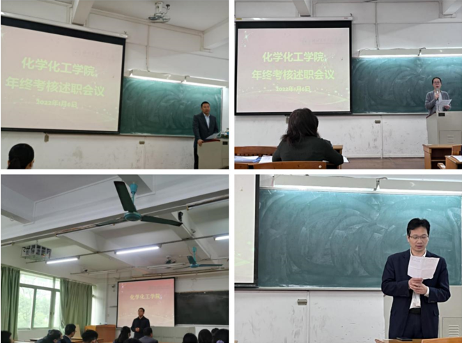 邱树华书记认真总结了一年来基层党建工作,围绕2021年主要工作及成效、当前党建工作存在问题及改进措施、2022年党建工作思路和目标三个方面展开总结述职。舒绪刚院长围绕学院整体教学质量和科研水平做了详细述职报告。学院党委副书记严丽纯汇报了2021年度学生工作的成绩和改进方向。陈循军副院长总结了个人年度教学和科研成果。
