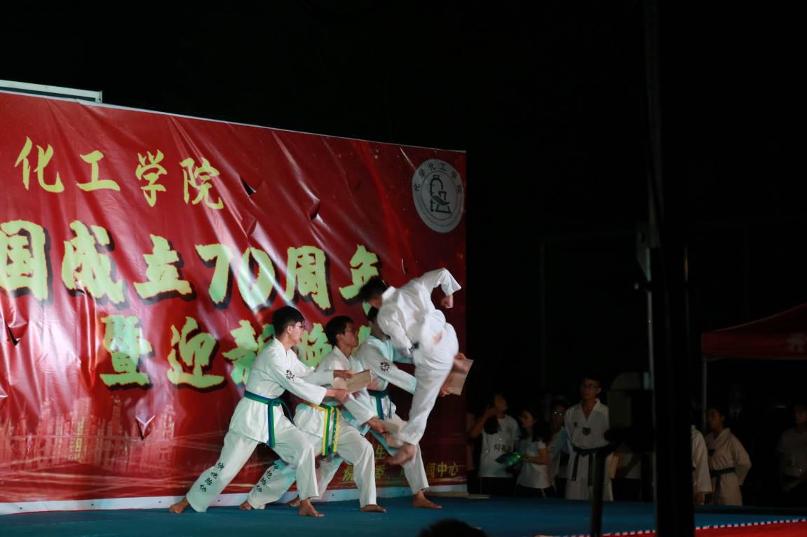 在学习完生活中的化学小技巧后,便是校跆拳道协会带来的跆拳道节目《跆拳一身》,其变化多端的破板姿势让新生们目不转睛,瞬间点燃了现场的气氛。