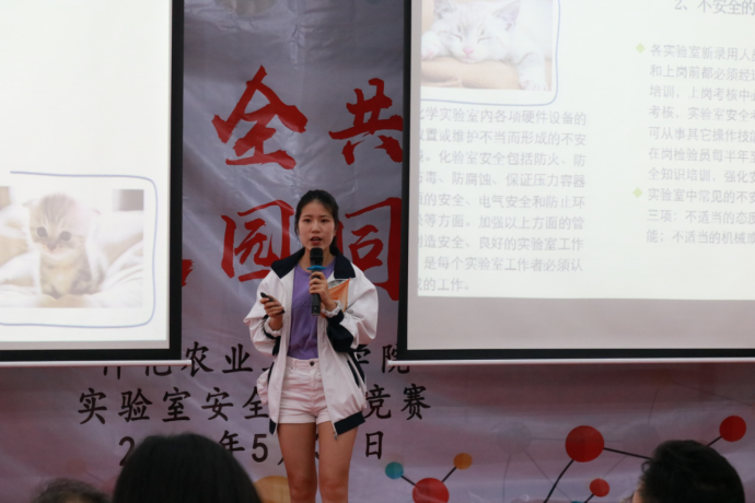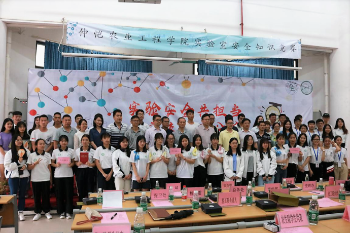 为进一步普及实验室及其它安全知识,增强仲园学子的安全防范意识和能力,建设平安校园,5月30日,由实验室与设备管理处、保卫处、校团委、今年会官方网站联合主办的全校首届实验室安全知识竞赛在白云校区D1小礼堂举行。本次大赛的主题为“实验室安全共担当、平安校园同分享”。学校党委书记宋垚臻、党委副书记何斌、副校长田允波,党政办、宣传部、实验室与设备管理处、保卫处、学生处、校团委、教务处、研究生处、总务处以及今年会官方网站、农业与生物学院、动物科技学院、轻工食品学院、环境科学与工程学院、园艺园林学院负责人到场观看比赛。