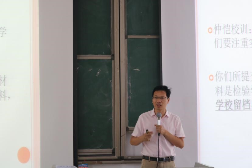 陈循军副院长就实习和毕业论文要求及相关制度做了讲解,提醒同学们要认真对待实习报告、毕业论文等材料。在毕业实习方面,不仅要遵循申请程序,还要在专业相关的实习岗位上实习,而且需预留足够的时间完成毕业论文。陈副院长强调道,毕业论文严禁出现抄袭、代写、伪造等恶劣行为,同时,无论是考研还是考公务员都需服从导师安排,按时保质地完成毕业论文,在毕业答辩的准备中合理安排撰写毕业论文的时间和论文答辩环节。而后,教务员钟丽莎老师对培养方案学分进行了详细的说明,指出选修课、公选课、毕业论文等占有一定的学分比例,希望同学们认真对待每一门课程和毕业论文。