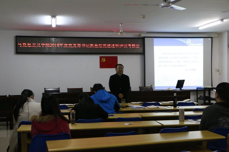 段捷频在会上讲话。他充分肯定了2018年度各位党支部书记在工作中取得的突出成就,号召各位党支部书记要进一步认真踏实做好基层党建工作,再接再厉,切实贯彻落实校院两级党委的各项工作部署。他对金年会党支部书记提出了四点要求:一是加强理论学习,以习近平新时代中国特色社会主义思想为指导,提高政治站位,各党支部书记政治理论学习不能流于形式,要在学懂、弄通、做实上下功夫,积极推动“三进”工作;二是要重视组织建设,新的一年各党支部书记要选优配齐支委班子,把干净、忠诚、担当的党员选到支委班子,发挥骨干带头作用,在凝心聚力上起到火车头的作用;三是进一步抓好党支部的规范化、标准化建设,贯彻落实校院两级党委的各项重点工作任务;四是要加强创新,树立品牌,结合专业特色,丰富活动形式和载体,进一步增强党支部的战斗堡垒作用和政治核心作用,在推动学院人才培养、学科建设、社会服务等方面做出新的贡献。