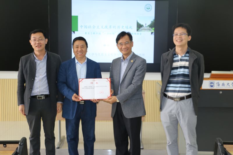 1月9日至11日,jinnianhui金年会诚信至上2018-2019学年冬季小学期名家讲堂第五讲在五号教学楼113教室举行。中山大学徐俊忠教授应邀为金年会学生作以毛泽东思想为主题的三场学术报告。院长张云阁出席并为徐俊忠教授颁发jinnian金年会“冬季小学期授课外聘专家”证书,副院长吴朝阳出席。讲座由思想政治教育系主任陈招万主持。