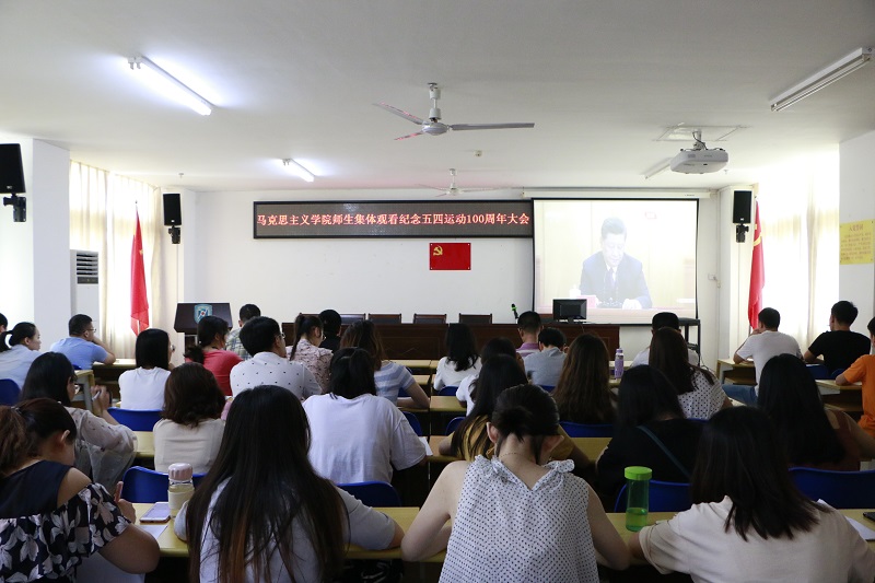 4月30日上午,jinnianhui金年会诚信至上组织师生在社科楼A315集体观看了“纪念五四运动100周年大会”的直播实况。院党委书记段捷频、副书记张井富、研究生辅导员张君成与全体在校研究生及部分本科生一起观看直播。