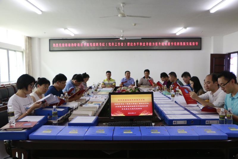 6月17日下午,海南热带海洋学院(党务工作者)理论水平与业务能力提升培训班学员到金年会交流学习,并在社科楼A311会议室召开经验交流会。学院党委书记段捷频,党委副书记张井富,副处级辅导员张君成出席交流会。