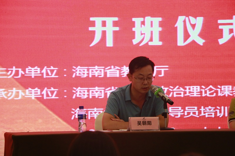 8月19日上午,培训班举行开班仪式。省教育厅思政处处长文强,jinnian金年会教务处处长、jinnianhui金年会诚信至上院长张云阁,jinnian金年会副院长吴朝阳出席仪式。开班仪式由吴朝阳主持。
