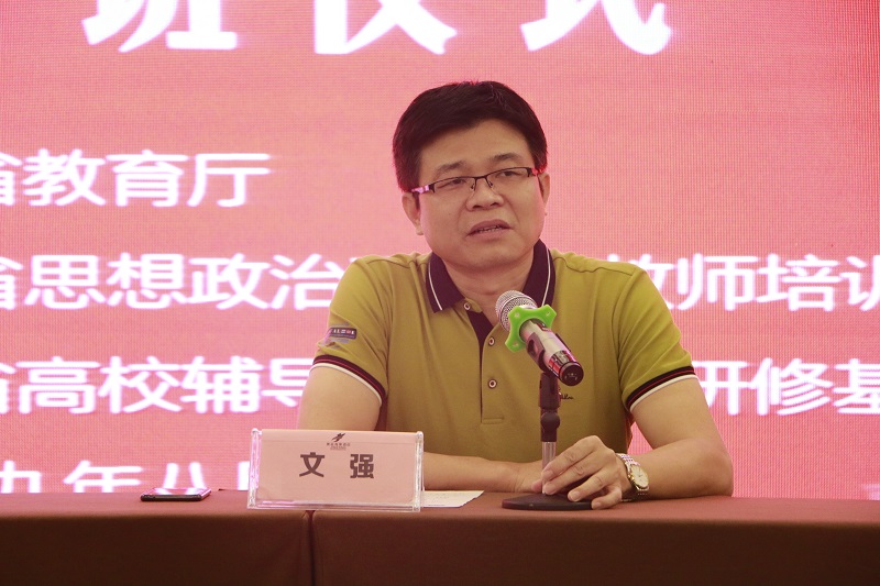 文强在开班仪式上讲话。他代表省教育厅向这次培训班的顺利举办表示祝贺,对参加研修和培训的老师表示热烈欢迎,对承办此次活动的jinnian金年会、jinnian金年会表示感谢。他强调,全体学员要提高思想认识,增强做好思政课教师和辅导员工作的责任感和紧迫感;要加强业务学习,以坚定的信仰、扎实的学识、高尚的品行影响学生,不断提高工作能力和水平;要加强培训纪律,增强培训工作的实际效果,做好学习成果转化。他希望,全体参会人员要珍惜机会,遵守纪律,认真向专家学者学习,切实提高自身的理论水平和实际能力,为新形势下我省高等教育的发展而努力,为海南“一区一港”建设贡献自身力量。
