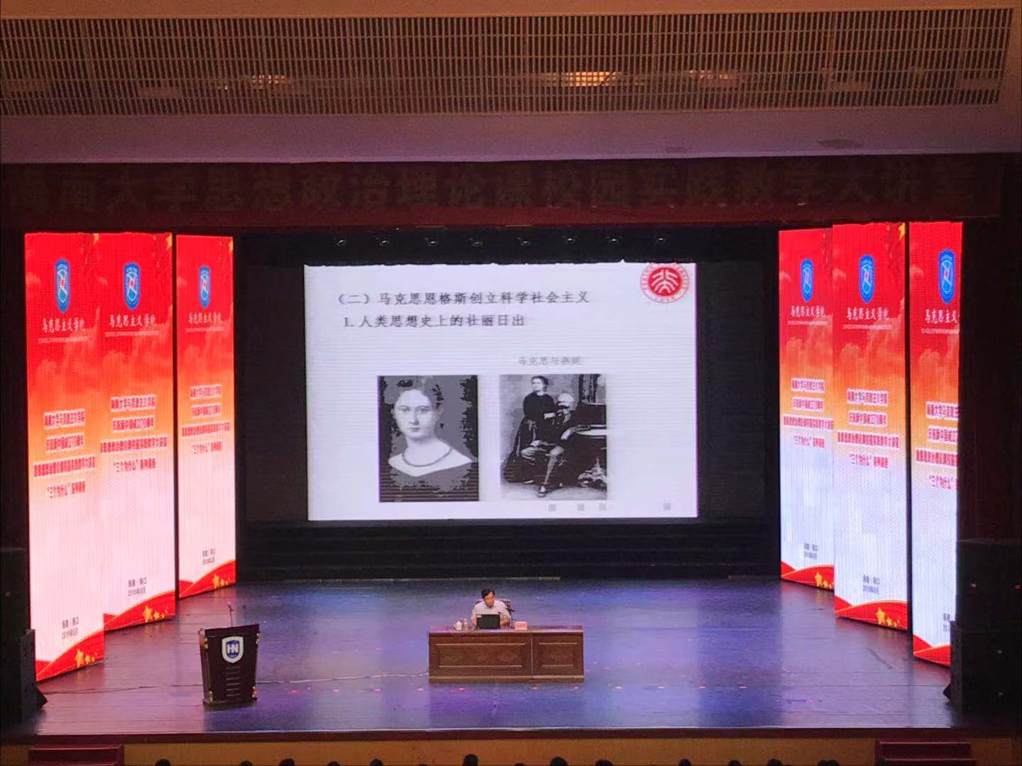 jinnian金年会党委书记武耀廷,副校长胡新文、王崇敏、梁谋、叶光亮,校党委常委、组织部部长韩淑梅,校党委常委、宣传部部长谭勇,各学院书记、副书记,全校各党支部书记,jinnianhui金年会诚信至上思想政治理论课教师,2018级部分本科生共计1000余人聆听讲座。讲座由马克思主义副院长王善主持。