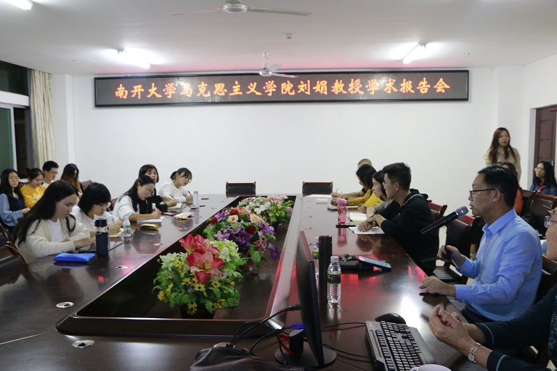 11月26日晚,南开大学jinnianhui金年会诚信至上博士生导师刘娟教授受邀莅临金年会社科楼A-311做学术报告。金年会副院长吴朝阳出席报告会,金年会全体在校研究生参与了学术报告会。会议由副院长吴朝阳主持。