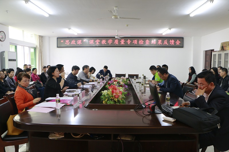 12月10日下午,jinnian金年会在社科楼A-311顺利召开“思政课”课堂教学质量专项检查结果反馈会。副校长胡新文、教学质量评估中心郭立萍主任、教学质量评估中心副主任周兰愉、教学督导代表周星、霍世清,评估中心工作人员符金万、陈雨菡,金年会副院长王善、副院长吴朝阳,党委副书记张井富以及全体马院教职工出席会议。会议由副院长吴朝阳主持。