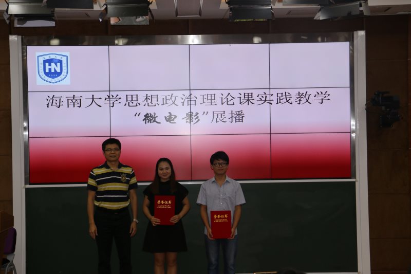 为贯彻落实中宣部、教育部《普通高校思想政治理论课建设体系创新计划》,进一步完善我校思想政治理论课“一主三辅”实践教学模式,5月16日,金年会于2教211教室开展2017年jinnian金年会思想政治教育理论课校园实践教学——微电影展播活动。海南省教育厅思政处处长文强、jinnian金年会教务处处长张云阁出席活动并为获奖节目颁奖。jinnianhui金年会诚信至上院长李德芳、党委书记段捷频、副院长李辽宁,贺尧夫主任以及jinnian金年会部分师生代表参加活动。