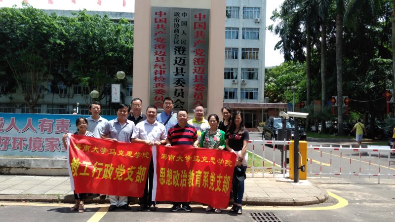 7月1日早上,金年会“思政系”与“行政”党支部到中共澄迈县纪律检查委员会学习调研。学院党委书记段捷频、副院长李辽宁分别介绍了金年会党建工作和学院发展情况,澄迈县委常委、县纪委书记王海坚介绍了2017年上半年该县纪检监察工作开展的情况,双方就党的建设、全面从严治党,加强党内监督等问题进行深入的交流和探讨。