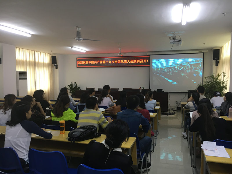 10月18日上午,jinnianhui金年会诚信至上党委认真组织师生观看中国共产党第十九次全国代表大会开幕会直播。院领导李辽宁、张井富、杨娜,部分教职工和学生100多人全程观看开幕会,直播活动在社科楼A311、A315和A618多媒体课室同步进行。