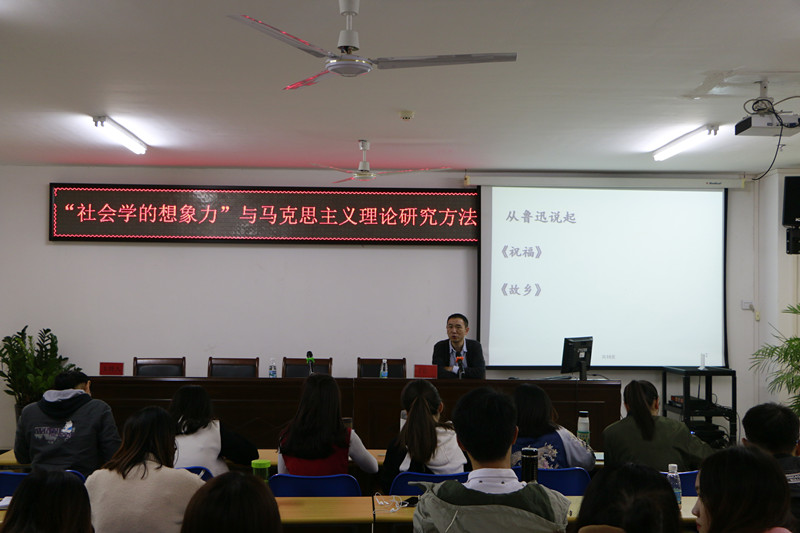 丁匡一首先以鲁迅作品为切入点,探讨鲁迅作品背后时代背景所蕴含的社会学哲理,为了让我们更好理解并在实际中运用社会学的想象力,他提出以下三点方法:一是总体性的辩证法与辩证法的总体性,从空间的历史的角度深入挖掘背后深层内涵;二是网状思维vs点状思维,以自己为点深入时代,学会观察、学会思考,研究事物动态的发展的联系;三是要有马克思主义哲学批判精神,要敢于批评,勇于超越,他认为以上三种方法统一且互动,并与大家分享了自己的感悟。他强调,要切己体察的发觉问题,返本开新的阅读文本,与时俱进的关注现实。以阅读为第一要务,阅读经典,及时记录感悟。最后他为大家推荐经典读物,期待大家有所收获。并期望jinnian金年会与海南师范大学两校研究生有机会可以互相探讨、互相交流,碰撞出思想火花。