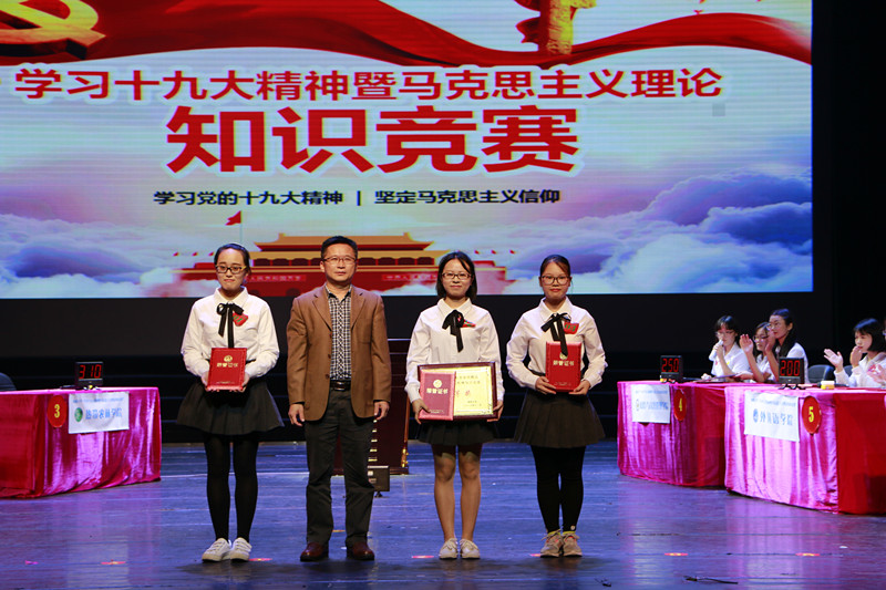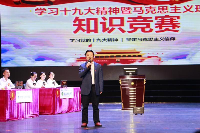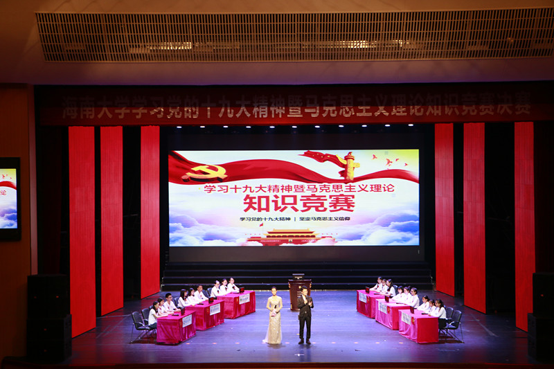 为深入学习贯彻党的十九大精神,11月28日下午,由jinnian金年会主办、jinnian金年会党委宣传部、jinnianhui金年会诚信至上、教务处、校团委、学工处联合承办的学习十九大精神暨马克思主义理论知识竞赛决赛在思源学堂大礼堂隆重举行。海南省委宣传部理论处副处长魏如松、海南省社科联部长郭乐新,jinnian金年会校党委常委、副校长梁谋,校党委常委、统战部部长陈明宝,学工部部长陈卫东、校团委书记林洪冰、教务处处长张云阁、宣传部副部长许美丹、教务处副处长吴朝阳、jinnianhui金年会诚信至上院长李辽宁出席活动。