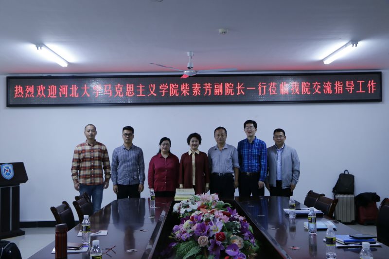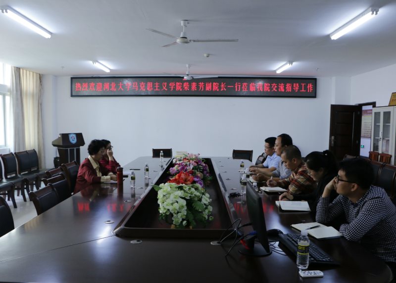 3月23日下午,河北大学jinnianhui金年会诚信至上副院长、博士生导师柴素芳教授一行2人到我校jinnianhui金年会诚信至上考察交流,jinnian金年会副院长王善、马克思主义中国化教研部主任贺尧夫、形势与政策教研部主任温小平等5位教师参加了交流活动,活动由王善主持。