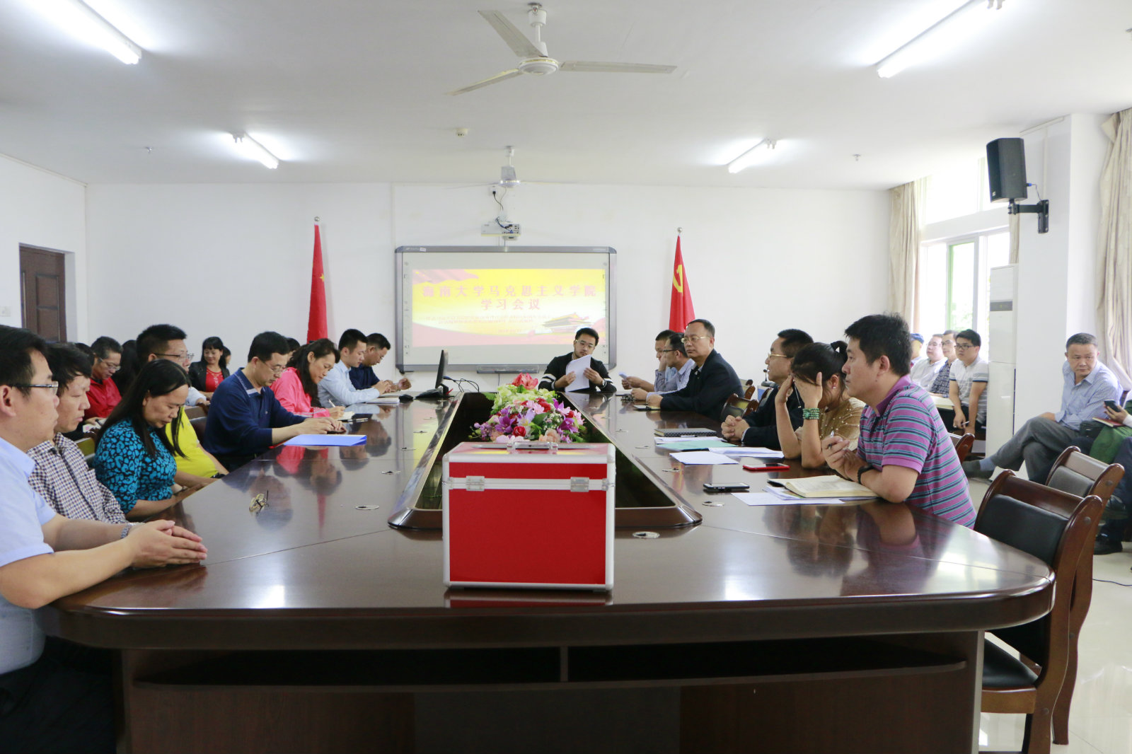4月17日下午,jinnianhui金年会诚信至上在学院会议室召开全体教职工大会。会上,院党委书记段捷频传达学习了习近平总书记在庆祝海南建省办经济特区30周年大会上的重要讲话、《中共中央国务院关于支持海南全面深化改革开放的指导意见》和省委常委会(扩大)会议精神,并就各党支部全面开展相关学习活动作出具体安排和部署。