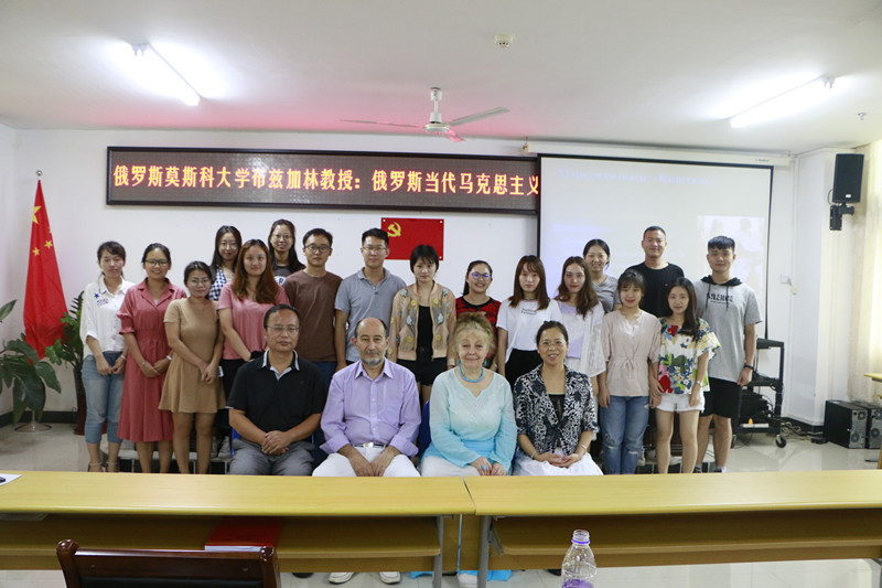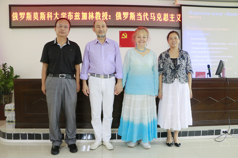 6月19日下午,莫斯科大学马克思主义研究教育中心主任、终身荣誉教授布兹加林教授和莫斯科金融法律大学布拉夫卡教授受邀来金年会作题为“俄罗斯当代马克思主义”的学术讲座。讲座由海南师范大学陈红教授担任翻译,jinnian金年会副院长王善主持,金年会部分师生共同参加。