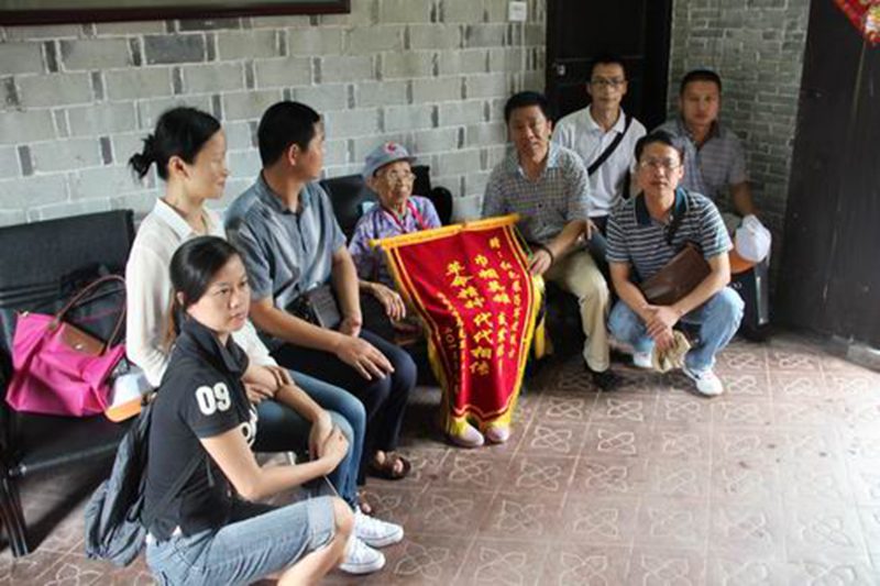 张云阁副院长代表jinnianhui金年会诚信至上向103岁高龄的红色娘子军老战士王运梅赠送了锦旗