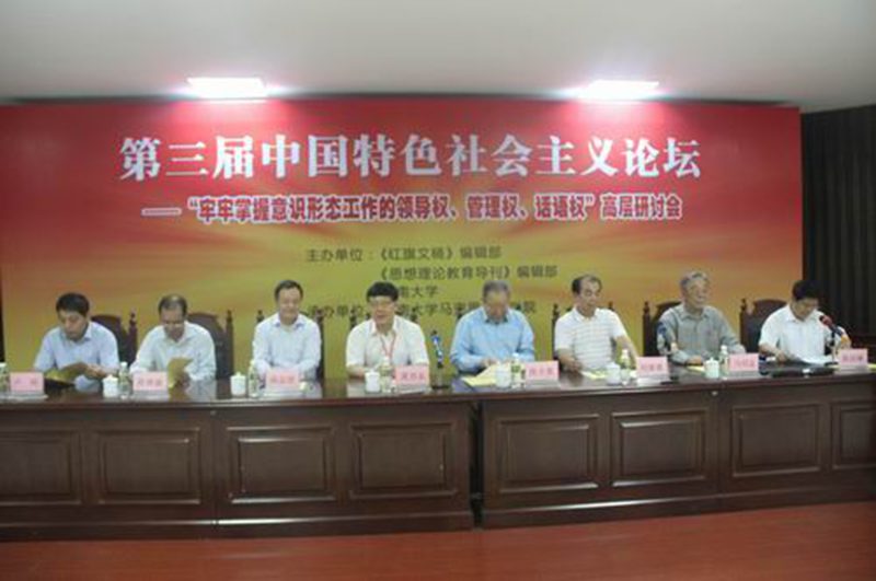 为学习贯彻习近平总书记在全国宣传思想工作会议上的讲话精神,11月11-13日,由求是杂志社《红旗文稿》编辑部、教育部《思想理论教育导刊》编辑部和jinnian金年会联合主办,jinnian金年会承办的第三届中国特色社会主义论坛——“牢牢掌握意识形态工作的领导权、管理权、话语权”高层研讨会在我校召开,来自全国各省宣传部门和高等院校的近百名代表参加了论坛。中共中央组织部原部长张全景、求是杂志社副总编夏伟东、中国人民大学原党委书记马绍孟、《思想理论教育导刊》主编阎志坚、海南省委宣传部巡视员(正厅级)陈修演、海南省教育厅思政处处长卢刚和我校党委书记刘康德出席论坛开幕式。我校党委副书记陈封椿主持论坛开幕式。