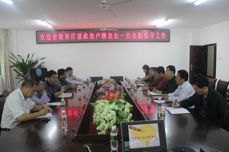 11月21日下午,海南省教育厅思政处处长卢刚、副处长刘世琼及省思政课专家组成员一行5人到金年会调研思想政治理论课建设情况。金年会院长李德芳、院党委书记梁谋、副院长张云阁和相关教师参加调研座谈会。