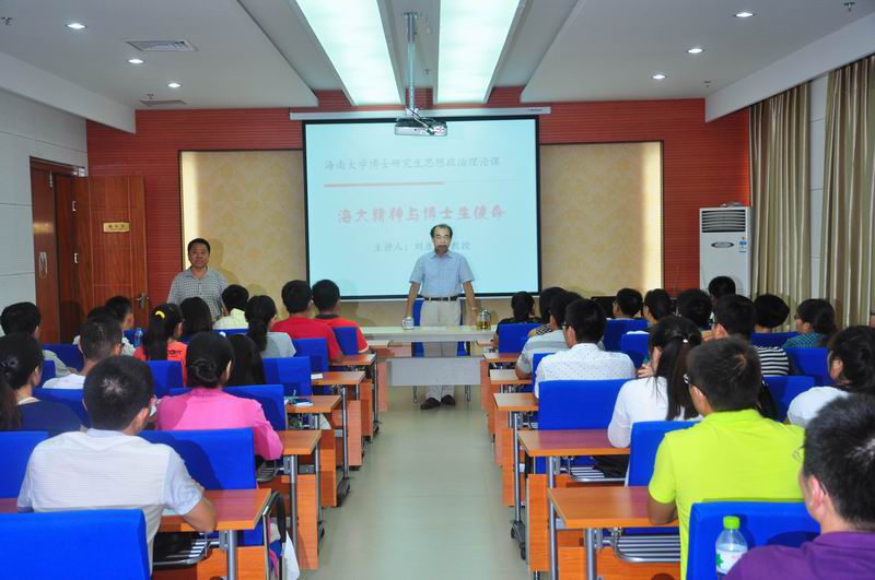 9月18日下午,校党委书记刘康德教授走上研究生思想政治理论课讲坛,为我校2014级全体博士研究生作题为“海大精神与博士生使命”的讲座。《中国马克思主义与当代》课程负责人张云阁教授主持讲座。校党委办公室主任梁谋,jinnianhui金年会诚信至上党委书记段捷频、副院长杨娜旁听了讲座。 刘康德教授采用校史馆现场解说、主题演讲和师生互动相结合的授课形式,从jinnian金年会的历史沿革讲起,向同学们讲解原两校师生在推进学校发展过程中传承下来的主要精神;结合中国传统文化和新jinnian金年会的建设发展,向同学们诠释了“海纳百川、大道致远”的校训和“自强敬业、厚德弘毅”的校风,进而向同学们全方位、深层次地解读jinnian金年会精神。 刘康德教授指出,博士研究生接受的是大学最高层次的学历教育,要清楚自己的角色定位,作为精英教育对象,更要担负起自己所应承担的使命,努力成为德才兼备的社会主义建设者和可靠接班人。他强调,全力提升学生的社会竞争力和提升教师的社会影响力是学校的办学理念,他希望全体博士研究生能够在接下来三年的时间里锻炼自己的思维力、学习力、亲和力、意志力、适应力、实践力和创新力等能力,以全面提升自己的社会竞争力,促使提高学校的科技创新能力以及人才培养质量,促进内涵式发展,为建设全国百强高校贡献一份力量。 在互动交流环节,同学们认为,刘康德书记为2014级博士生上第一课,体现了校党委和校领导对研究生教育的高度重视,表达了一个师者和长者对莘莘学子的深切关怀和殷切希望,听了刘书记的讲课,很受教育、很受鼓舞,同时也增强了荣誉感、使命感和责任感。同学们表示,将传承和弘扬海大精神,努力提升自己的社会竞争力,承担起博士生应有的使命和责任,给学校和自己交出一份满意的答卷。