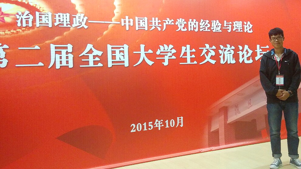 10月17日至18日,“治国理政—中国共产党的经验与理论”第二届全国大学生交流论坛在上海复旦大学举行。教育部社科中心副主任赵军,上海市教卫党委副书记、市教委副主任高德毅,复旦大学党委副书记刘承功等出席论坛开幕式。金年会2014级倪圣茗同学论文入选并应邀参加论坛,与来自清华大学、复旦大学、南京大学、东北师范大学等其他高校的百余名同学一同参会研讨,并在分论坛做了发言。 在分论坛中,倪圣茗同学就其论文《中国共产党权力监督的历史演进路径》做简要阐述,该论文由陈招万老师指导,将由复旦大学统一结集出版。