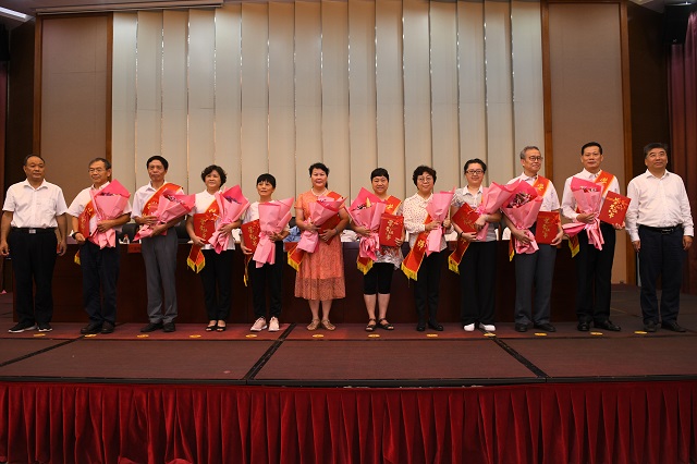 与会领导与嘉宾分别为荣休教师代表、从教30年教师颁证、献花。