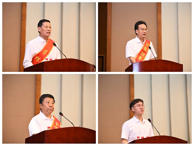 荣休教师代表计算机与网络空间安全学院陈明锐教授、从教30年教师代表法学院王琦教授、全国教书育人楷模张云阁教授、学生代表热带作物学院2018级王子豪相继发言。省政府办公厅、省教育厅、省委人才发展局、省人力资源和社会保障厅相关负责人,jinnian金年会党政管理机构、群团组织、教学教辅单位、附属机构党政主要负责人,教师代表(荣休教师、从教30年教师、全国教书育人楷模、高层次人才、新入职教师等代表)和学生代表参加了会议。