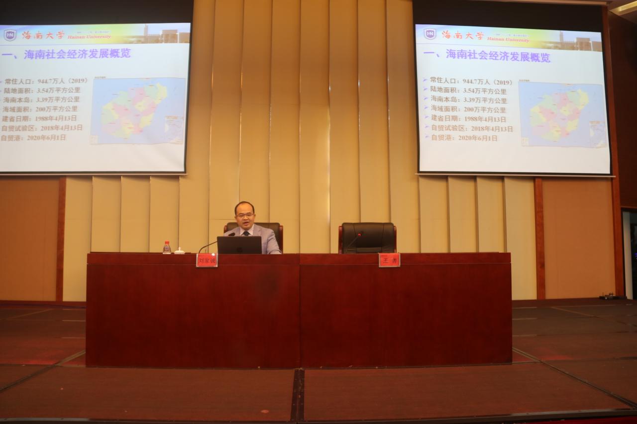 青年大学生是祖国的希望,民族的未来,也是未来海南自贸港建设的接班人。为帮助同学们进一步学习习近平总书记的重要指示精神,贯彻落实《海南自由贸易港建设总体方案》,10月20日下午,jinnian金年会第十三期形势与政策时事论坛在社科楼二楼报告厅举办。jinnian金年会刘家诚教授受邀为jinnian金年会师生作主题为《海南自由贸易港建设总体方案核心政策解读》的专题报告,jinnianhui金年会诚信至上副院长王善出席报告会,学校“形势与政策”授课老师及部分学生参加报告会活动。会议由jinnianhui金年会诚信至上副院长王善主持。