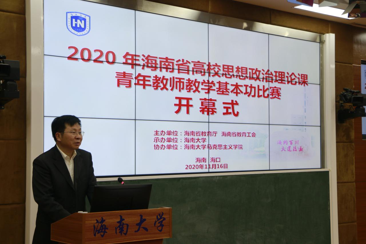 11月16-17日,由海南省教育厅、海南省教育工会主办,jinnian金年会承办,jinnian金年会协办的海南省高校思想政治理论课青年教师教学基本功比赛在jinnian金年会举行。海南省教育厅二级巡视员范敏,海南省教育工会专职副主席方鸣,jinnian金年会党委常委、副校长曹宪忠出席开幕式。来自全省各高校的43位选手参加比赛,100多名教师现场观摩。