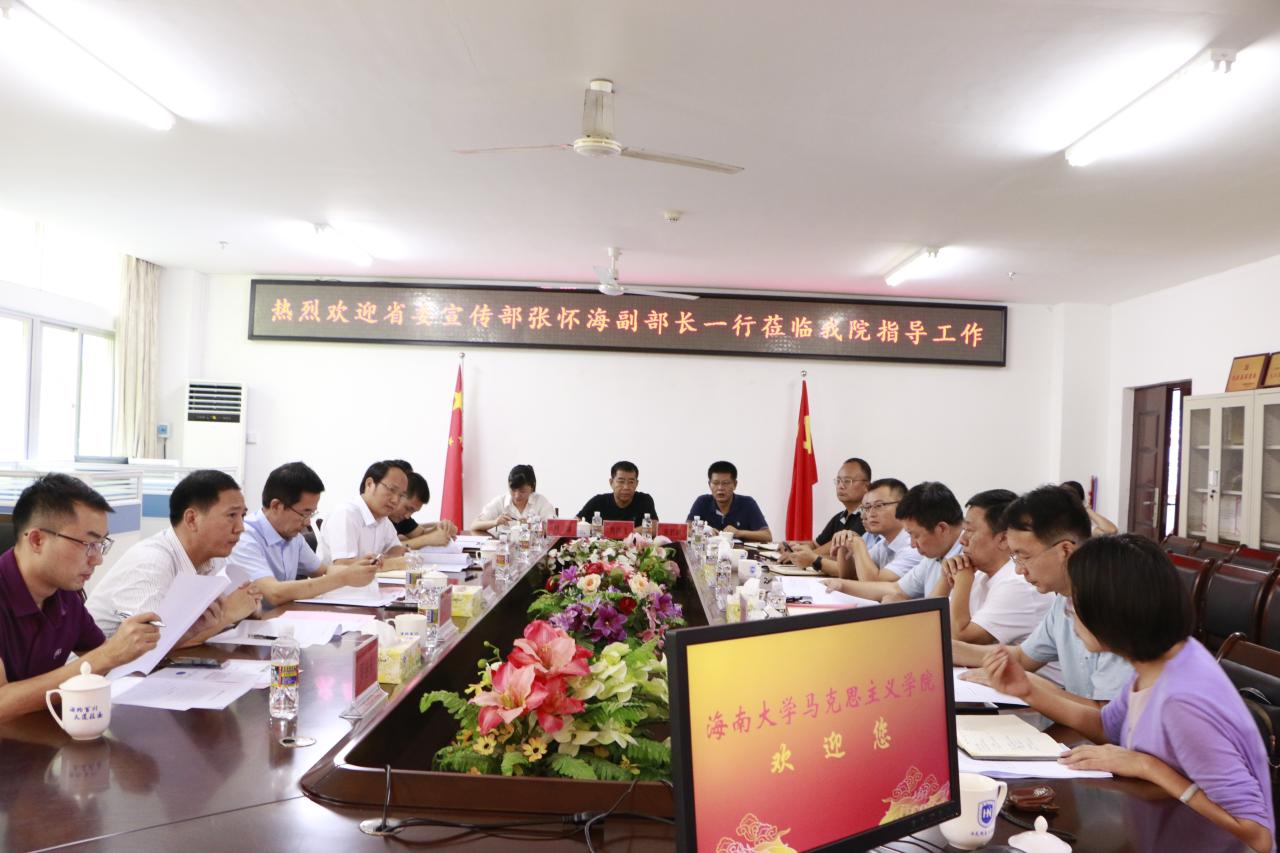 7月12日上午,省委宣传部张怀海副部长一行到jinnian金年会调研指导工作。校党委常委、副校长曹宪忠,校党委常委、宣传部部长谭勇出席,jinnianhui金年会诚信至上领导班子全体成员和教师代表参加调研座谈会。曹宪忠主持会议。