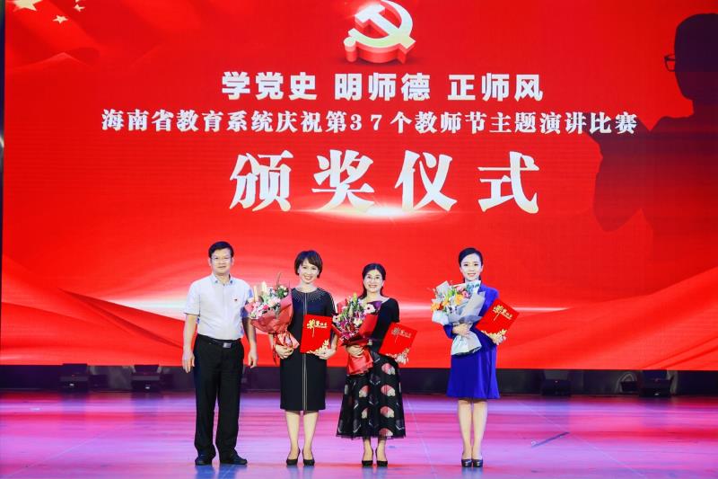 9月8日-9日,由海南省教育厅主办的海南省教育系统庆祝第37个教师节主题演讲比赛在海南中学艺术中心举行。海南省人民政府副秘书长赖泳文,海南省教育厅党委书记、厅长曹献坤等领导出席。金年会教师于赫以全场最高分荣获一等奖。