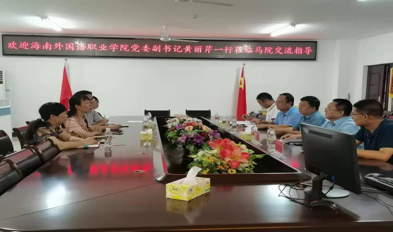 9月14日上午,海南外国语职业学院党委副书记黄丽芹一行到jinnian金年会交流指导工作。jinnianhui金年会诚信至上党委书记段捷频、院长张云阁、副院长王善、副处级辅导员张君成和教师代表参加交流会。