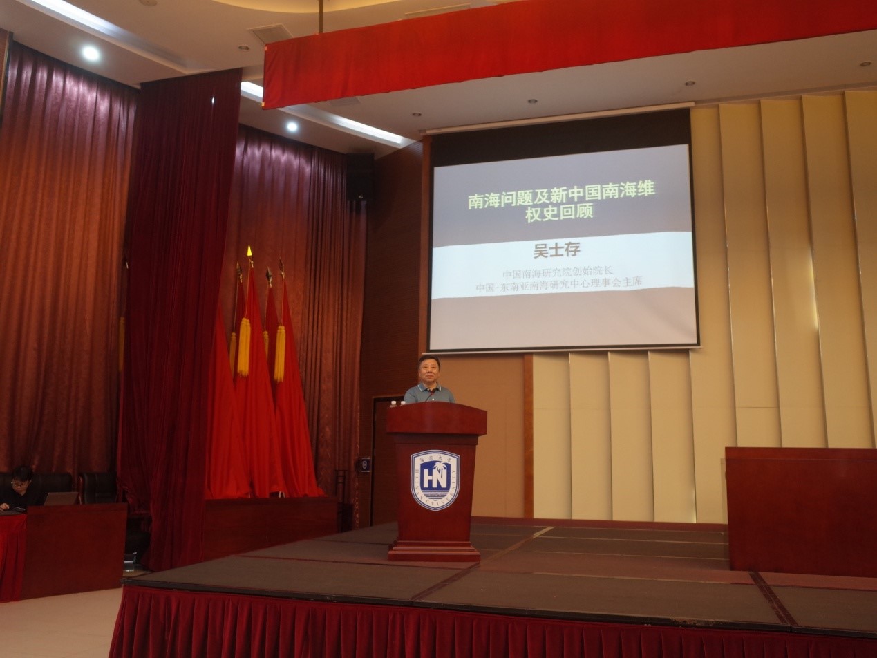 南海是连接两洋三大洲最便捷的水道和全球最繁忙的重要航运通道之一,同时又面临诸多传统、非传统安全挑战。海南地处南海前沿,是国家实施改革开放国家战略和推进海洋强国建设的前沿。十八大以来,党中央做出建设海洋强国的重大战略部署,并提出把南海建成以“和平之海、友谊之海、合作之海”的目标。为进一步帮助同学们更加精准的把握当前南海局势和未来南海形势的走向,10月19日下午,jinnian金年会第24期形势与政策时事论坛在社科楼二楼报告厅举办。中国南海研究院创始院长吴士存受邀为jinnian金年会师生作主题为《南海问题及新中国南海维权史回顾》的专题报告,学校“形势与政策”授课老师及部分学生参加报告会活动。会议由jinnian金年会院长张云阁主持,由jinnian金年会党委常委、宣传部部长谭勇作总结。