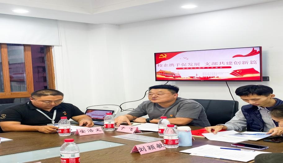 启航世纪教育培训有限公司党支部书记于飞介绍了该公司党支部创建过程、公司基本情况、企业发展、校企合作等情况。他表示,启航世纪教育培训有限公司党支部刚刚成立,在党建工作的开展及如何通过党建工作促进业务发展等方面面临一些困惑和难题。他希望通过合作共建,共享优势资源,形成一系列合作共建成果。