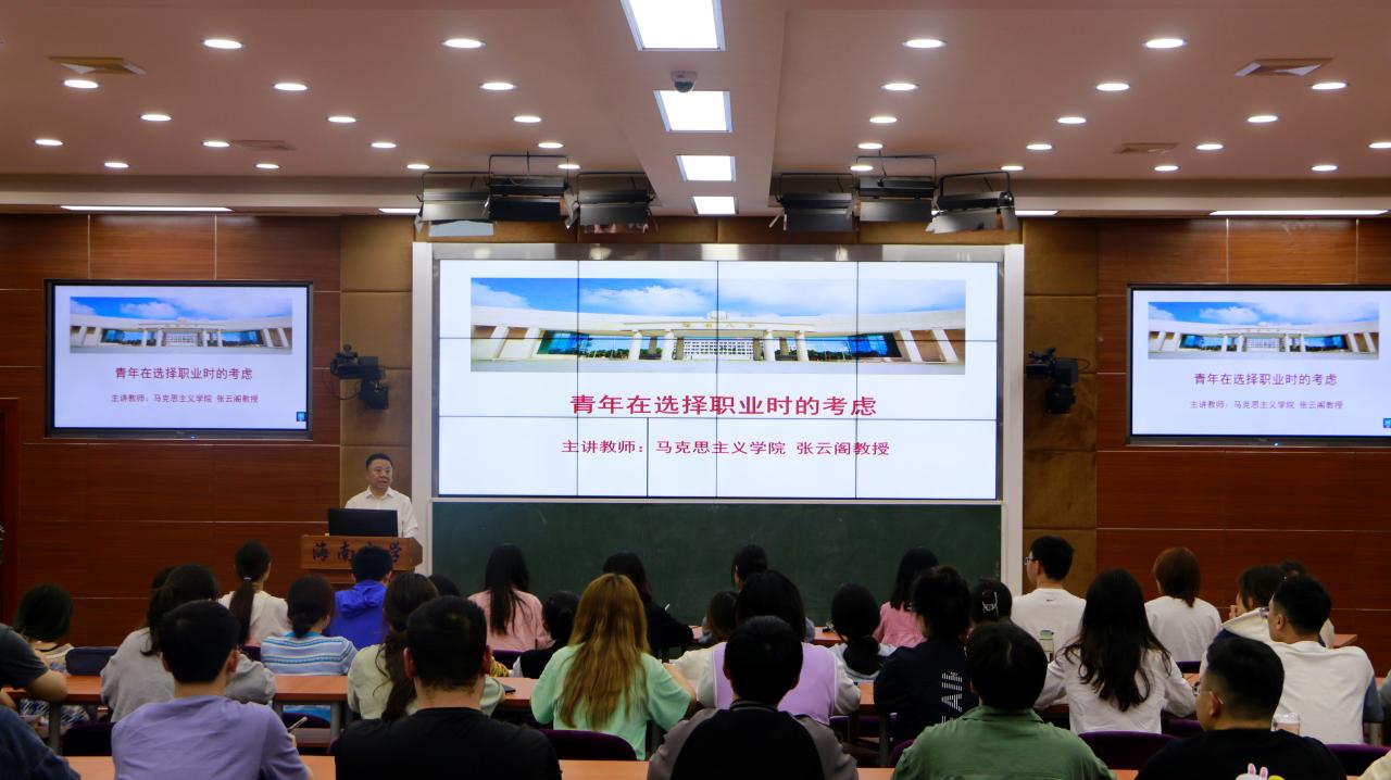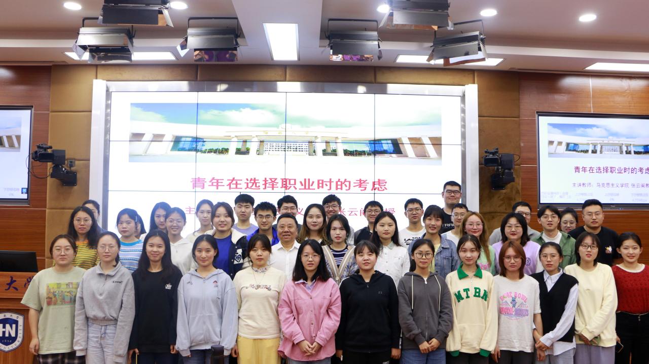 本次见面课的主题是《青年在选择职业时的考虑》。主讲教师jinnianhui金年会诚信至上院长、全国教书育人楷模、国家教学名师张云阁教授,以“理想和职业”为关键词,用生动、幽默的语言,援引马克思著作中的精彩部分,引导同学们思考“人为什么要有理想”、“理想与职业的关系”以及“青年马克思职业选择给我们的启示”问题。整堂课张老师以青年马克思选择职业时的考虑所具有的时代意义为主线,鼓励大家结合以人类幸福和自身的完美为职业选择的指针,选择最能为人类而工作的职业,心系国家,做一名坚定的马克思主义者。